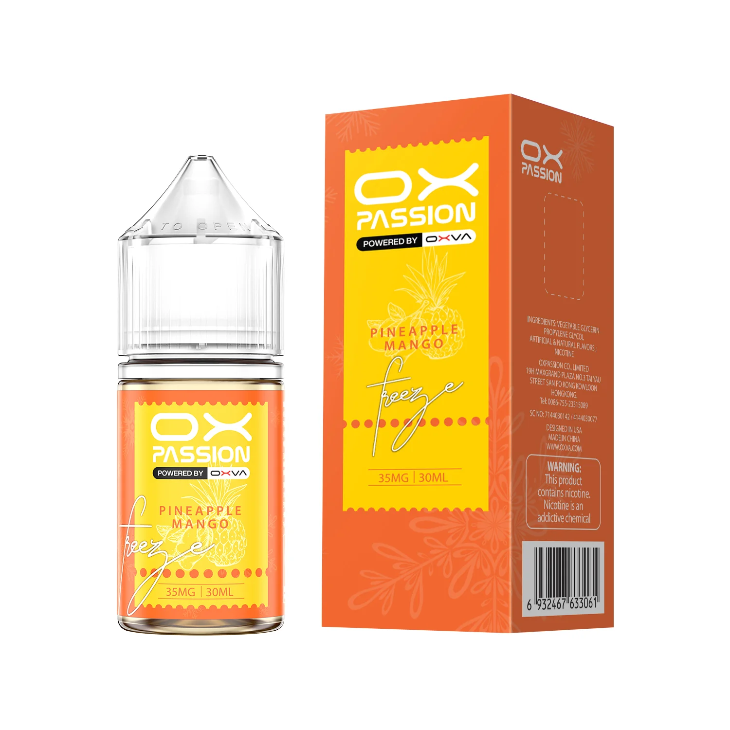 Buy OXVA OX Passion Freeze Pineapple Mango 30 ml in Pakistan – juicy mango and pineapple with icy finish, 35mg & 55mg nic salts. Shop at Cloud Groovers.